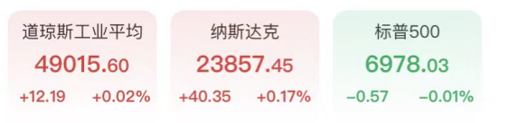 周三美股涨跌互现,投资者消化最新美联储利率决议,并等待多家科技巨头盘后公布业绩。截至收盘,道指涨12.19点,涨幅为0.02%,报49015.60点,纳指涨0.17%,报23857.45点;标普500指数微跌0.01%,报6978.03点,盘中历史首次突破7000点大关。